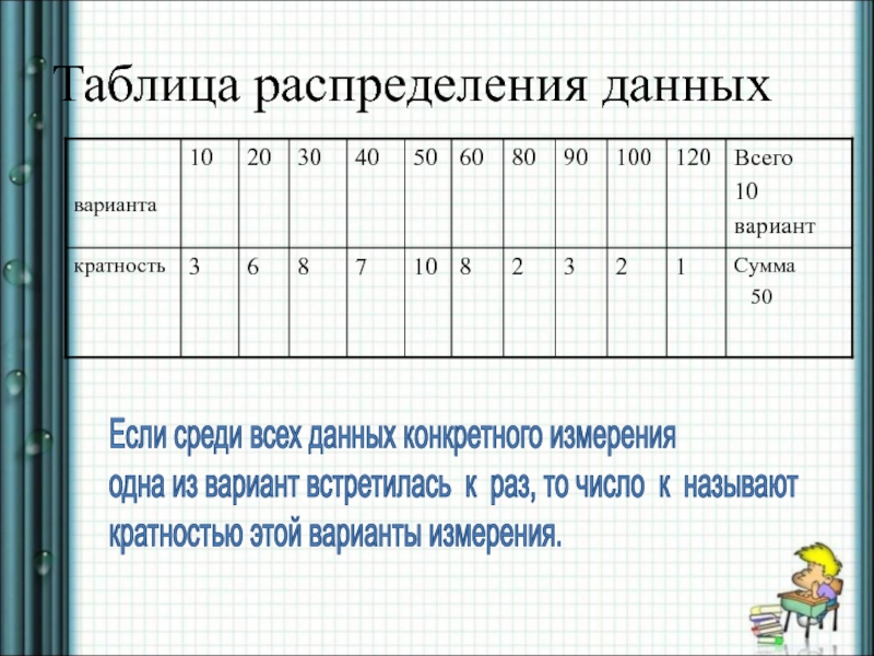Слайд 21Таблица распределения данных