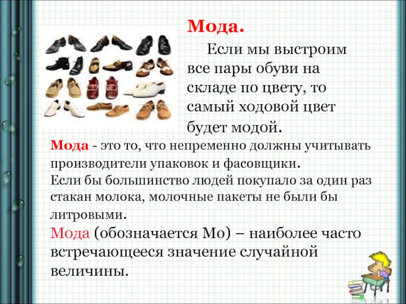 Мода (обозначается Мо) – наиболее часто встречающееся значение случайной величины.