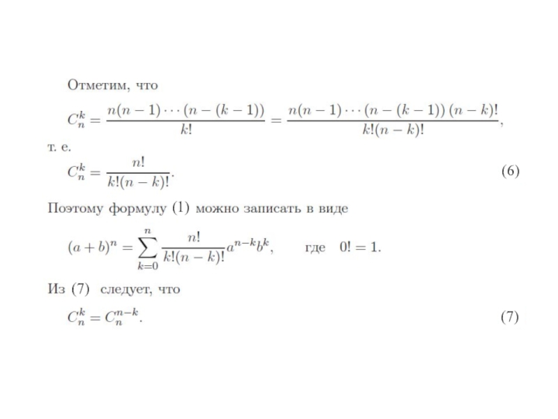 из себя сочетания из n по k, k=0,1,2,…,n, а "!" – это знак факториала).