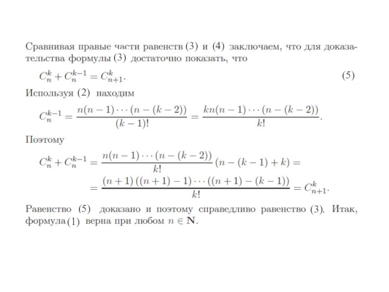 Формула бинома Ньютона для натуральных n имеет вид ,