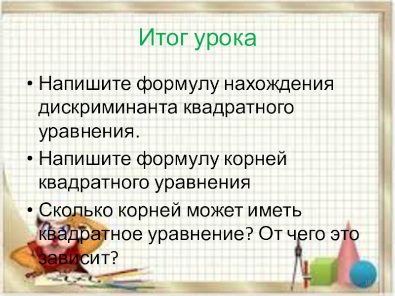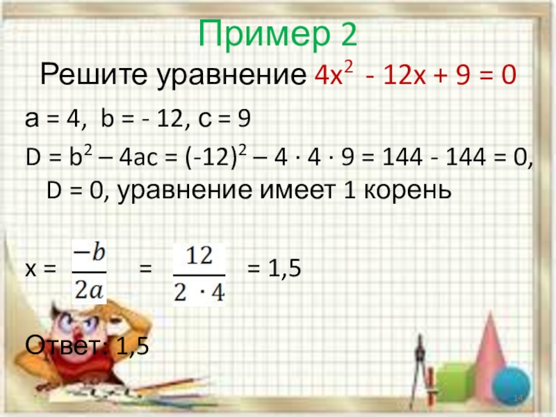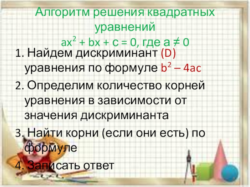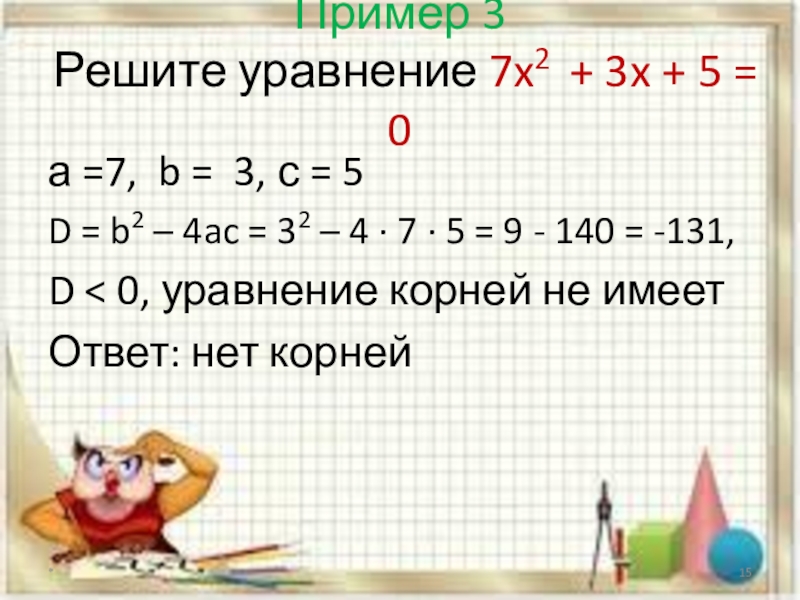 1. Найдем дискриминант (D) уравнения по формуле b2 – 4ac