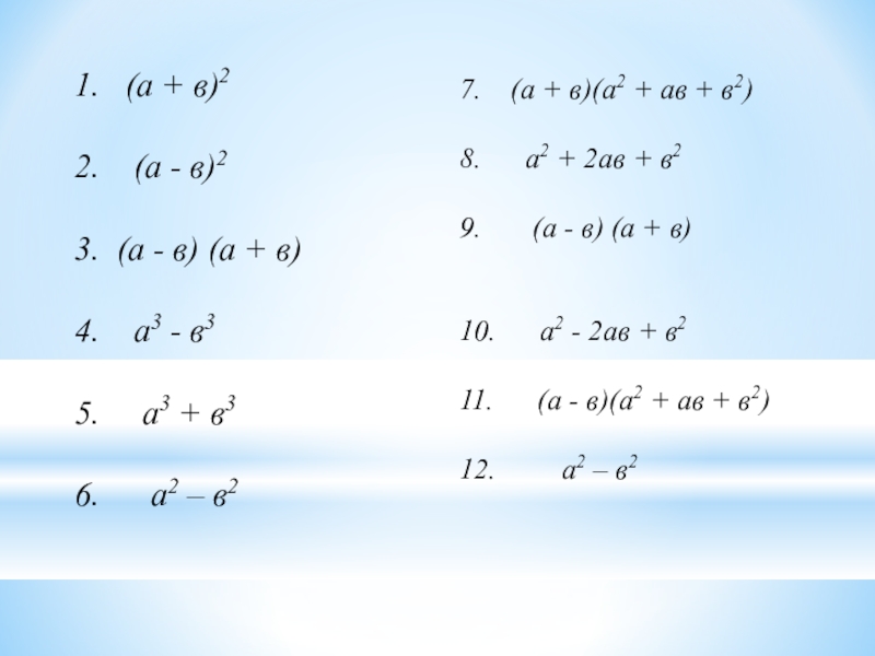 7. (а + в)(а2 + ав + в2)