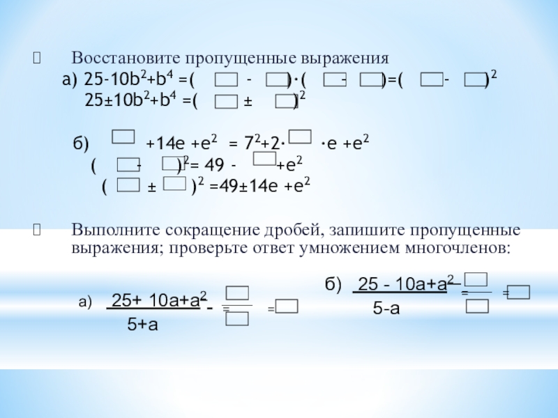а) 25+ 10а+а2 = =