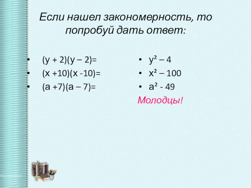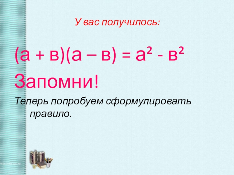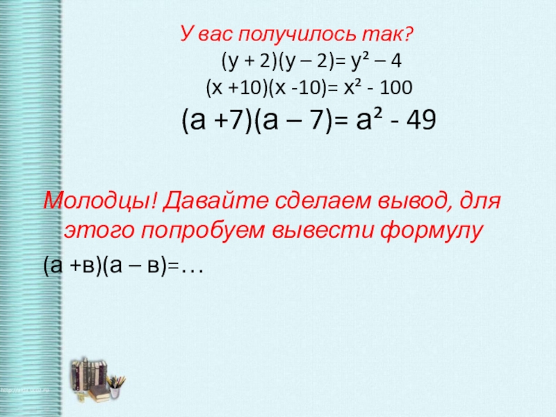 Молодцы! Давайте сделаем вывод, для этого попробуем вывести формулу