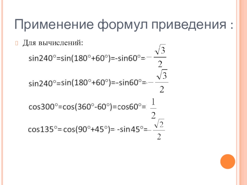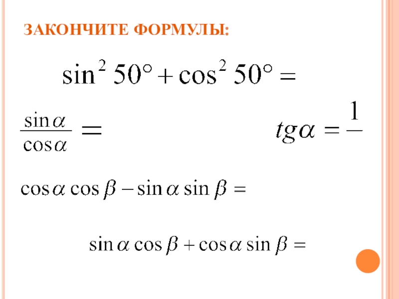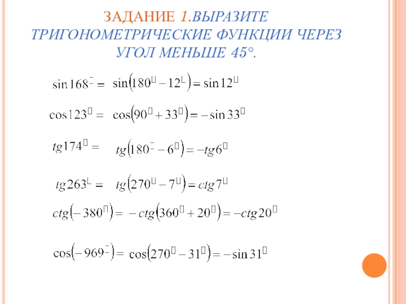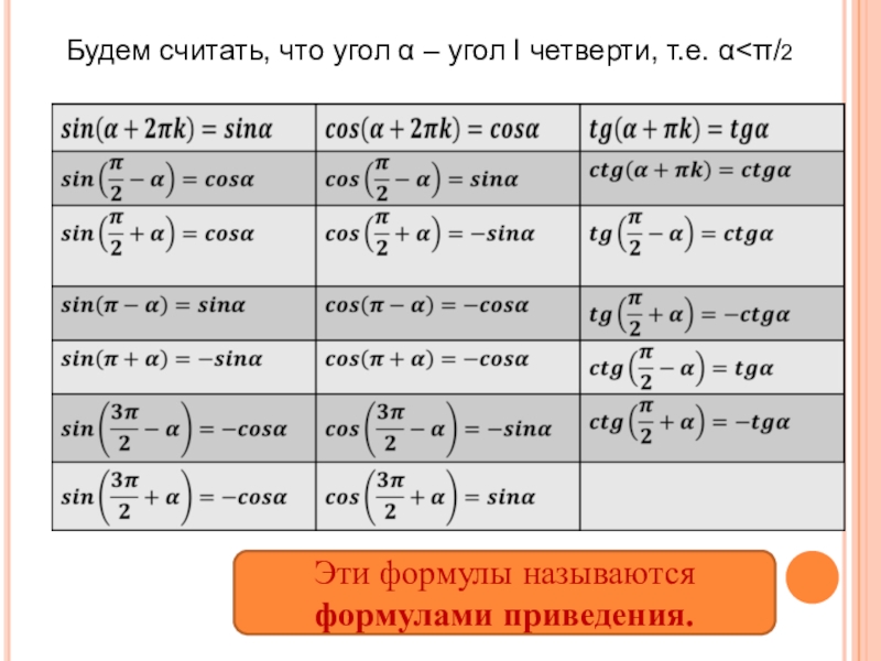 1. ФУНКЦИЯ В ПРАВОЙ ЧАСТИ РАВЕНСТВА БЕРЕТСЯ С ТЕМ ЖЕ ЗНАКОМ, КАКОЙ ИМЕЕТ ИСХОДНАЯ ФУНКЦИЯ, ЕСЛИ 0<Α<Π/2.