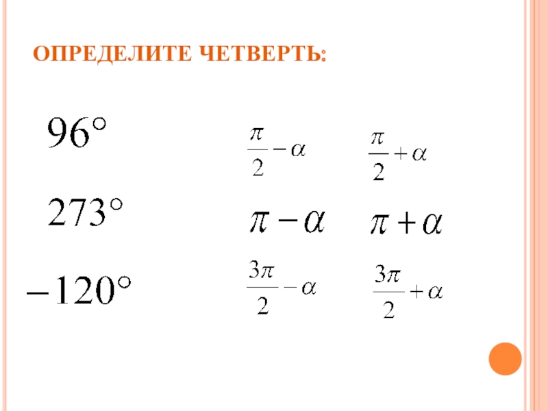 2. ДЛЯ УГЛОВ, КОТОРЫЕ ОТКЛАДЫВАЕМ ОТ ОСИ ОХ, π±Α, 2π ± Α НАЗВАНИЕ ИСХОДНОЙ ФУНКЦИИ СОХРАНЯЕТСЯ.