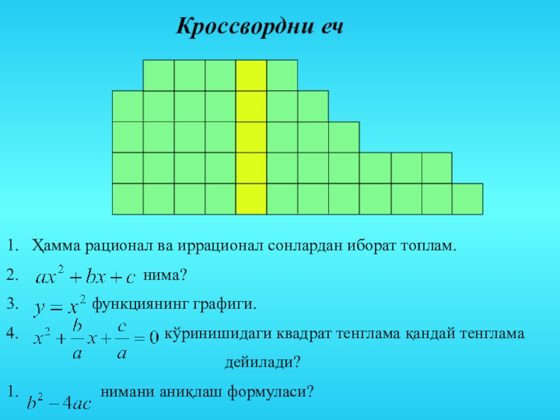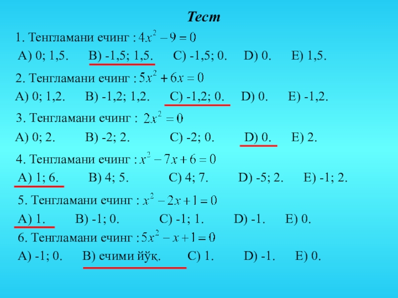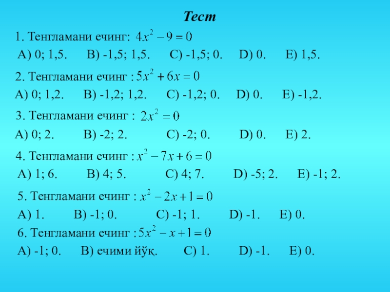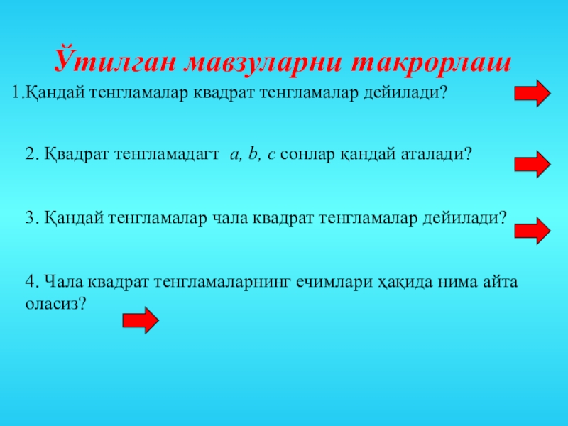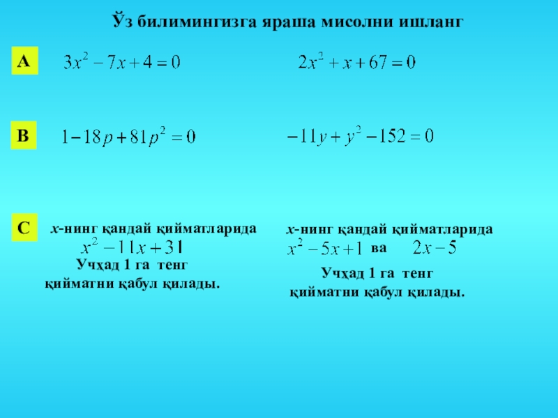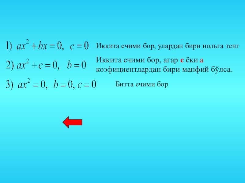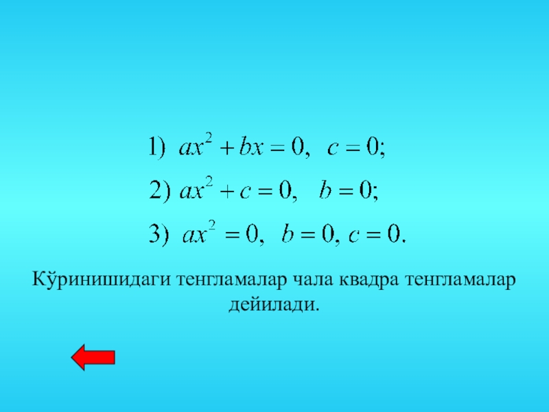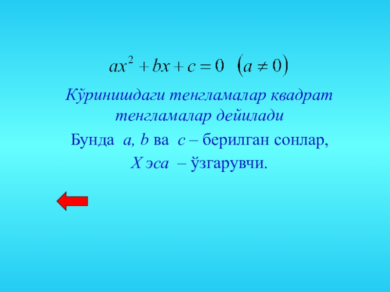 Бу формулалар квадрат тенглама илдизлари ҳисоблаш формулалари дейилади.