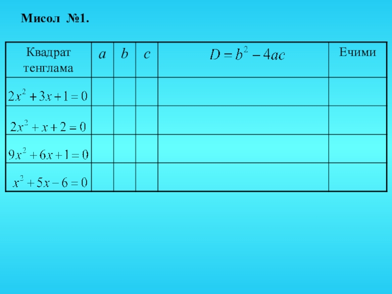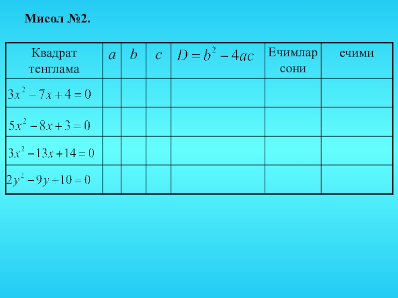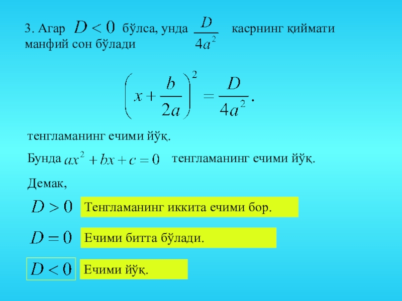 Дискриминанти деб аталади. Буни D ҳарфи билан белгилаш