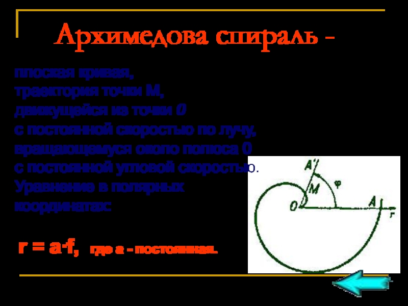 Слайд 10 Архимедова спираль -