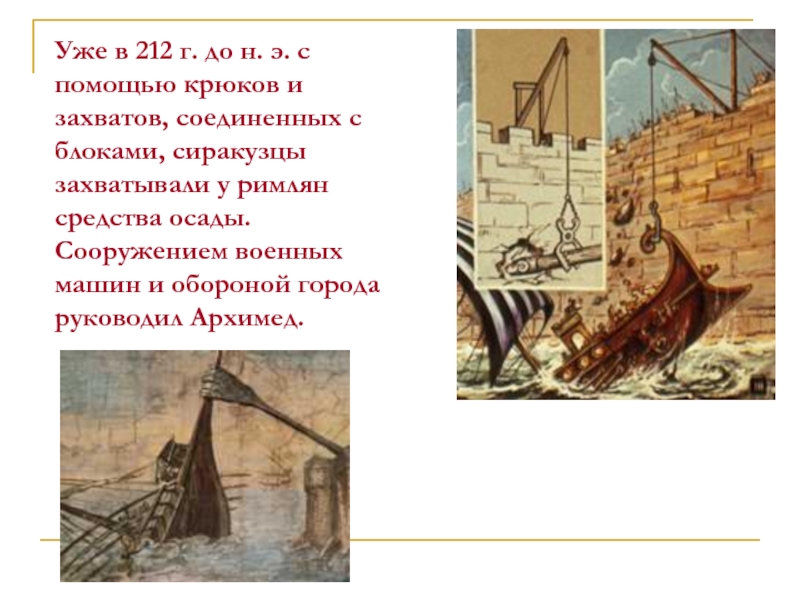 Слайд 18Уже в 212 г. до н. э. с помощью крюков и