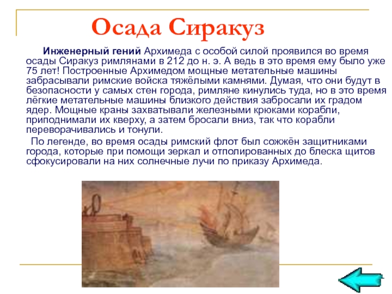 Защищал ученый Архимед.