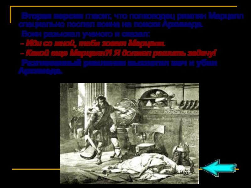 Разгневанный римлянин выхватил меч и убил Архимеда.