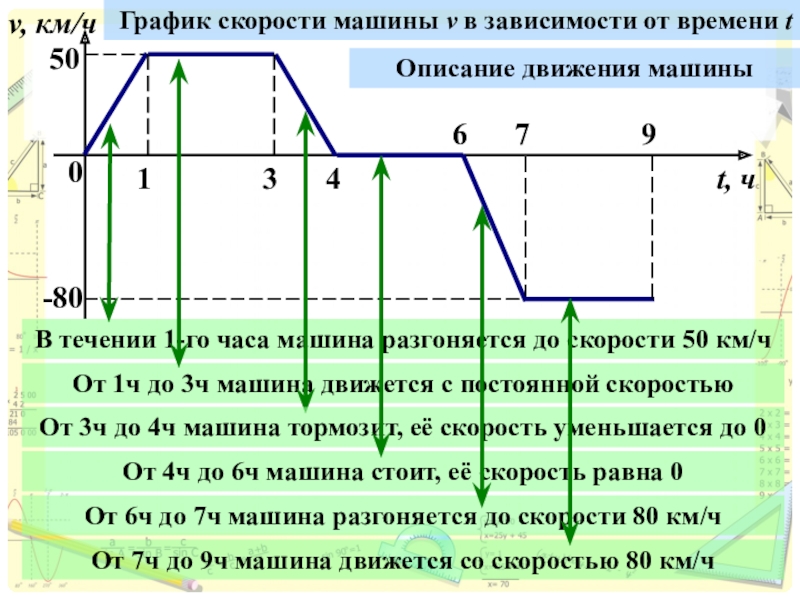 От 7ч до 9ч машина движется со скоростью 80 км/ч