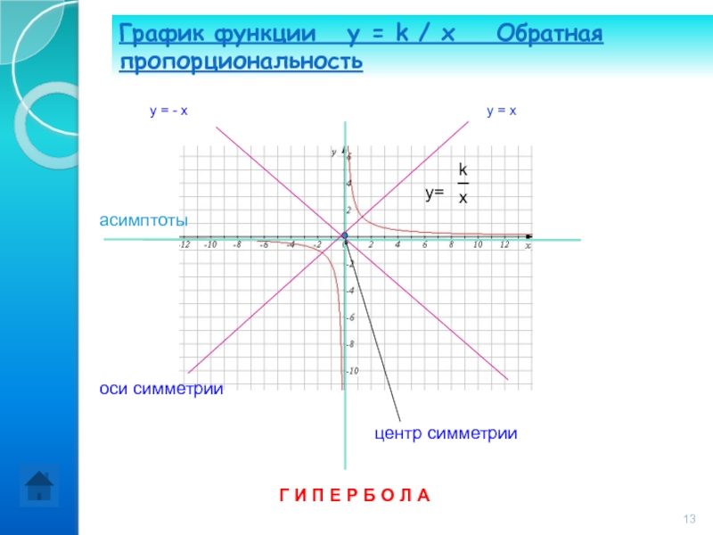 График обратно пропорциональной функции называется ГИПЕРБОЛА