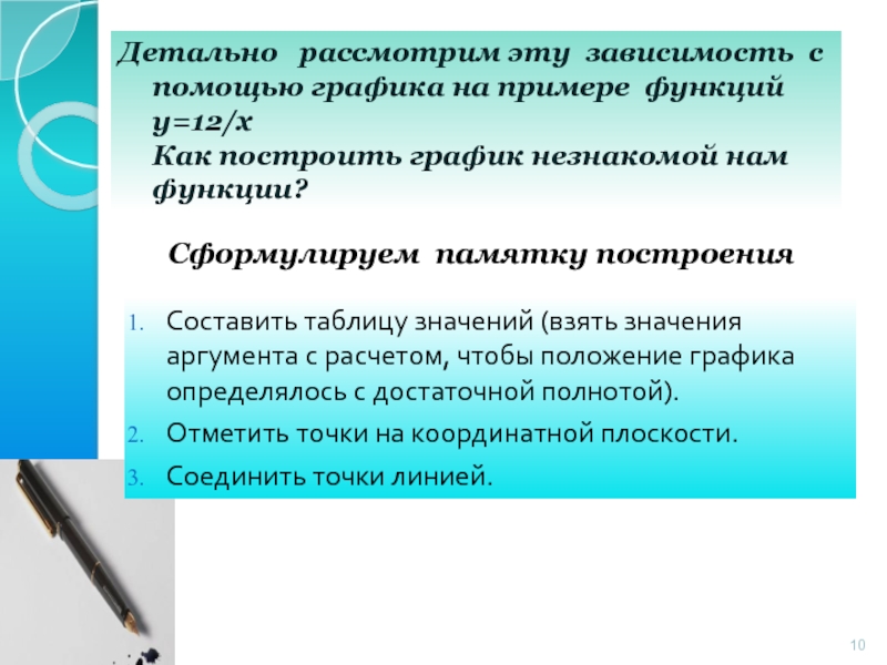 Детально рассмотрим эту зависимость с помощью графика на примере функций у=12/х