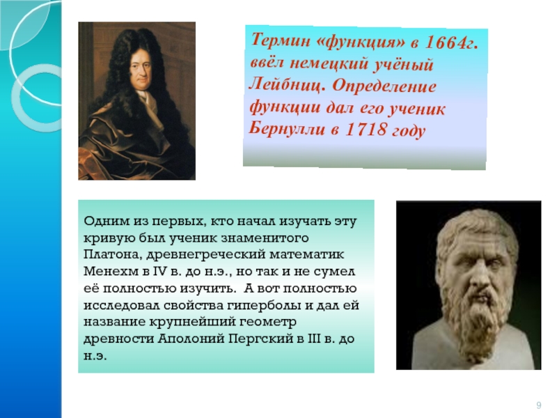 Термин «функция» в 1664г. ввёл немецкий учёный Лейбниц. Определение функции дал его ученик Бернулли в 1718 году