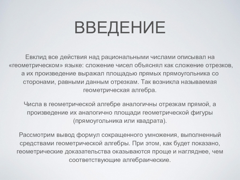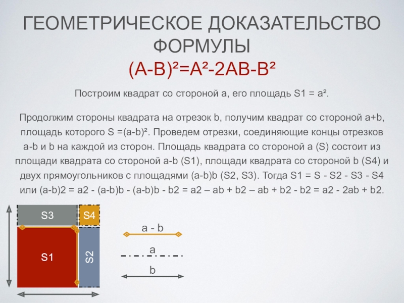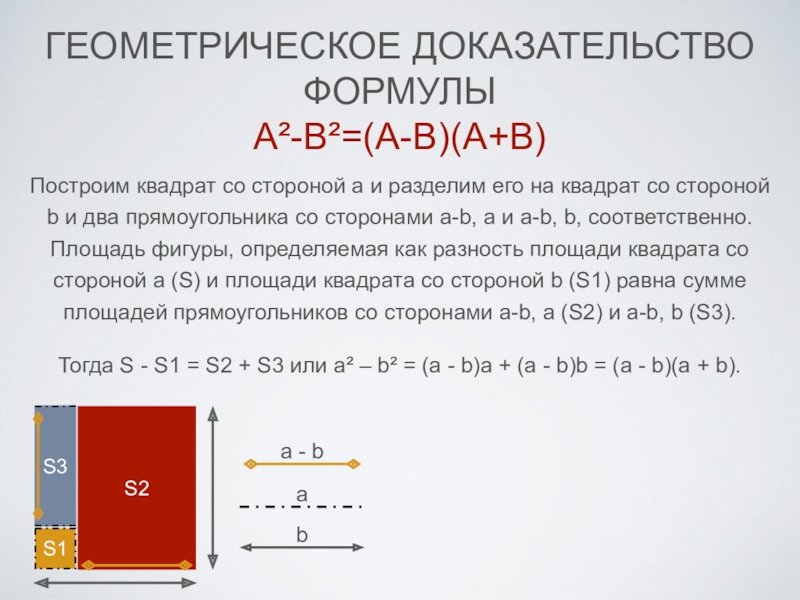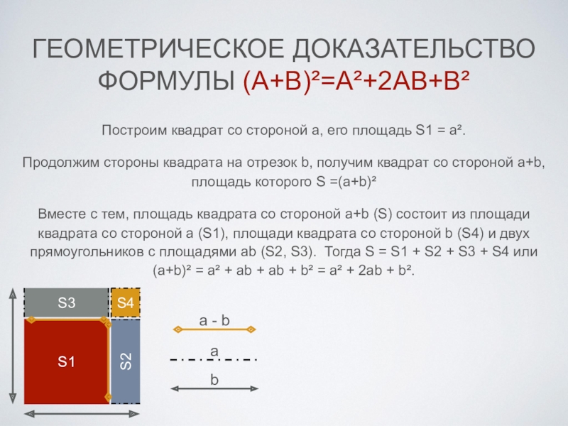 Презентация, доклад по алгебре на тему Геометрические доказательства формул сокращенного умножения