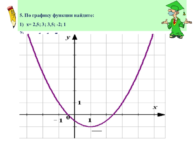 5. По графику функции найдите:1) х= 2,5; 3; 3,5; -2; 12) у= -1; 1; 5