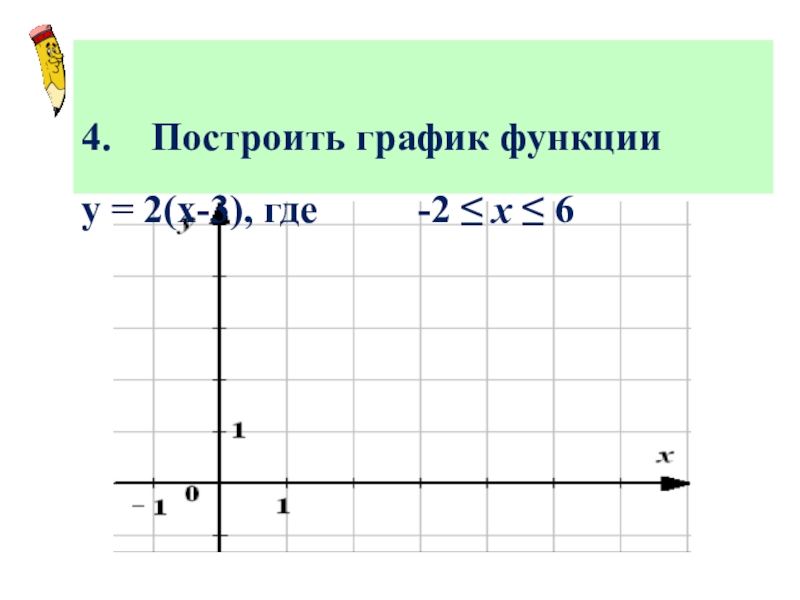 4.  Построить график функции у = 2(х-3), где     -2 ≤ х ≤