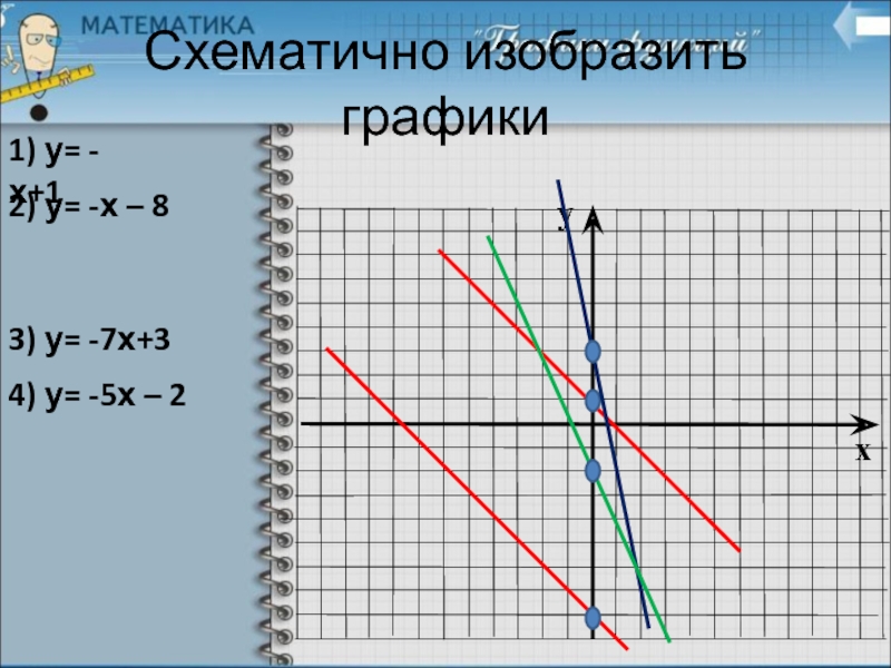 1) у= -х – 4