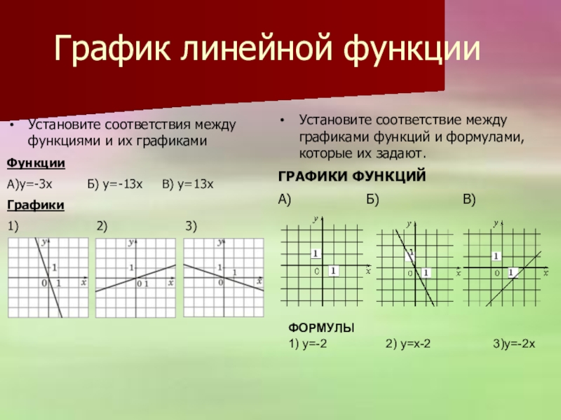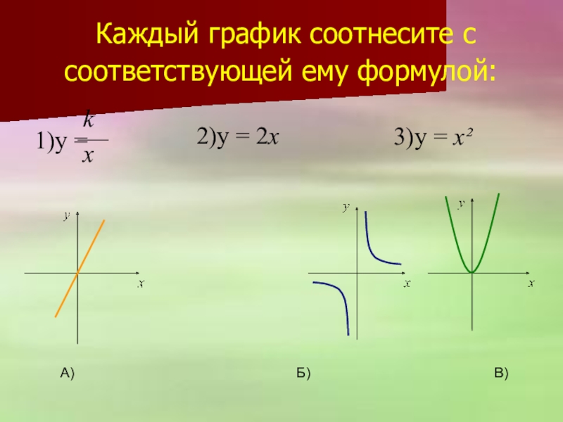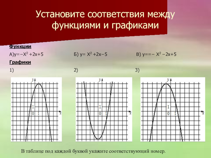 Установите соответствие между графиками функций и формулами, которые их задают.