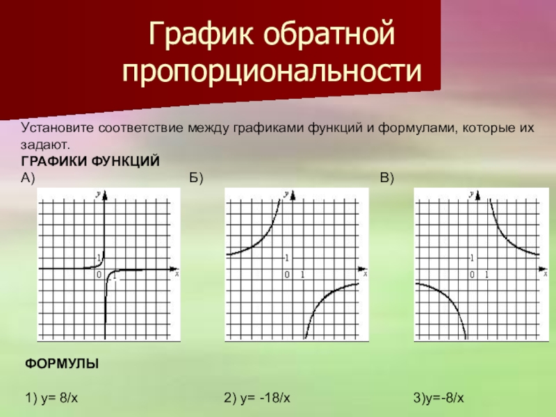 1) y= 8/x 2) y= -18/x 3)y=-8/x