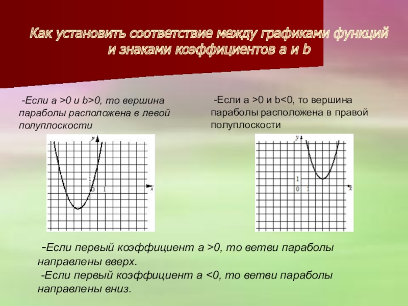 Как установить соответствие между графиками функций и знаками коэффициентов а и b