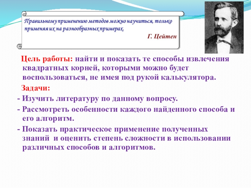 Предмет исследования: способы извлечения квадратных