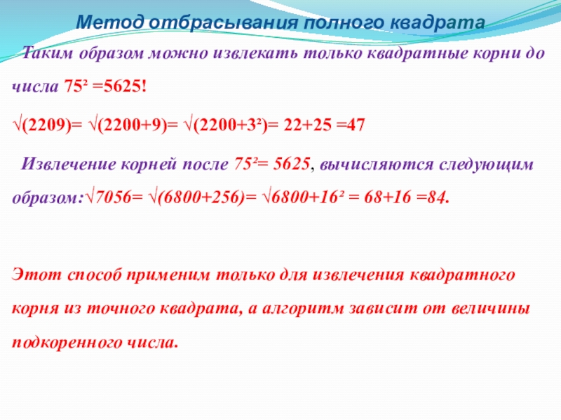 Слайд 13Метод отбрасывания полного квадрата