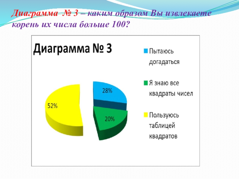 Слайд 17Диаграмма № 3 – каким образом Вы извлекаете корень их числа