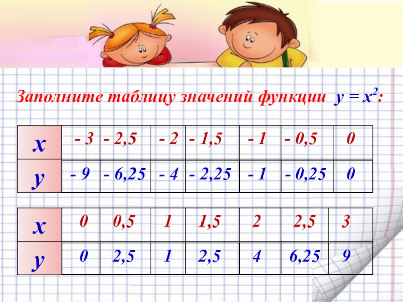 Принадлежит ли графику функции у = х2 точка: