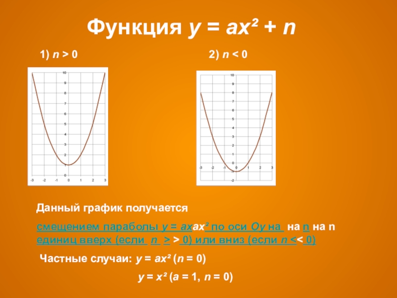 смещением параболы у = ахах² по оси Оу на на n на n единиц вверх (если n > > 0) или вниз (если n << 0)