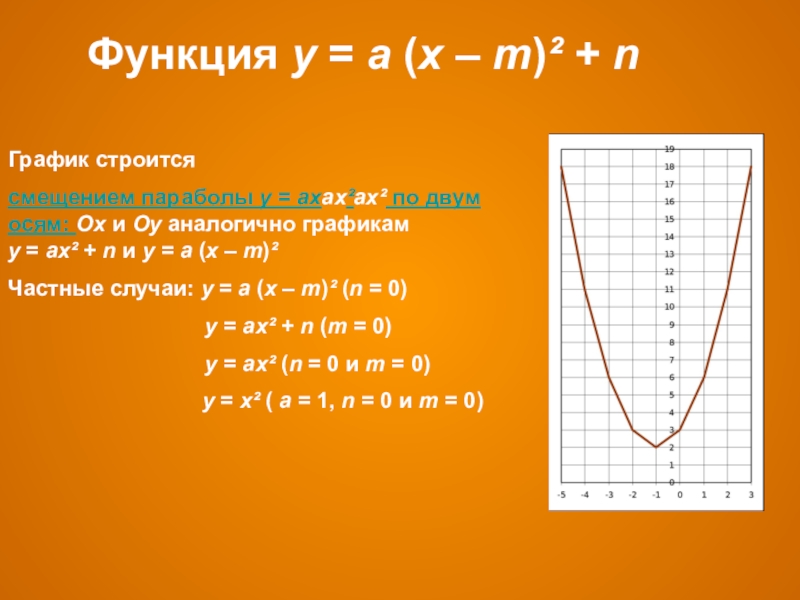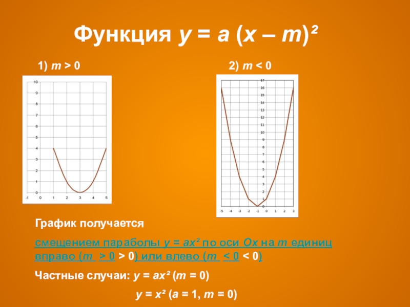 смещением параболы у = ах² по оси Ох на m единиц вправо (m > 0 > 0) или влево (m < 0 < 0)