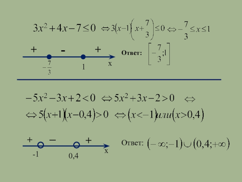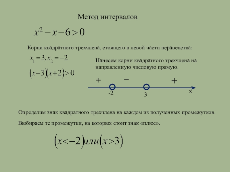 Определим знак квадратного трехчлена на каждом из полученных промежутков.