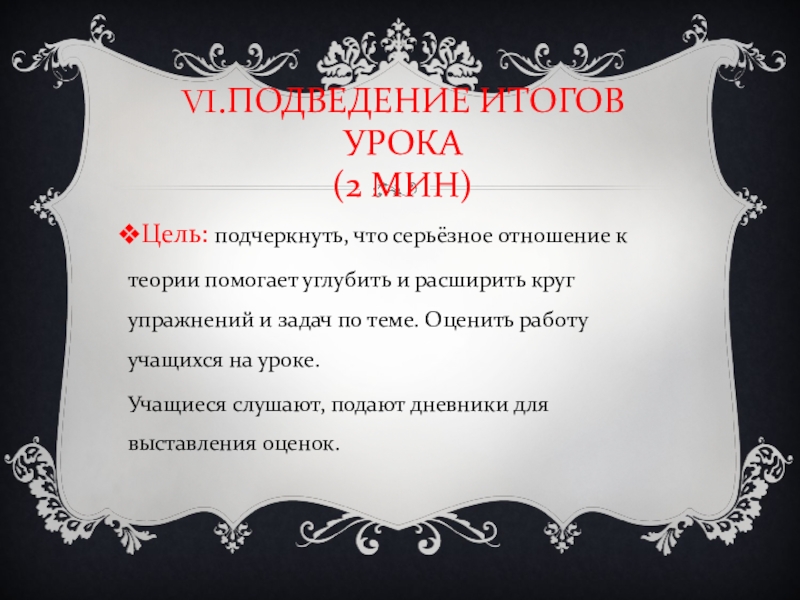VI.ПОДВЕДЕНИЕ ИТОГОВ УРОКА