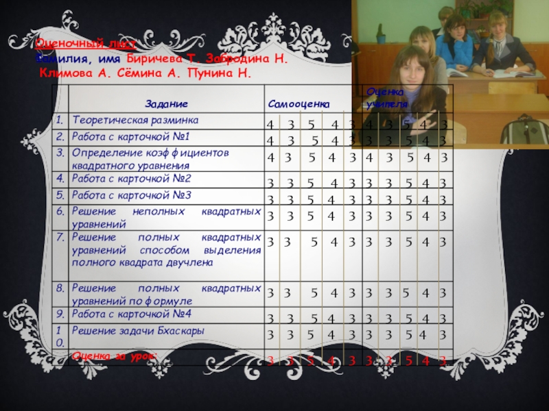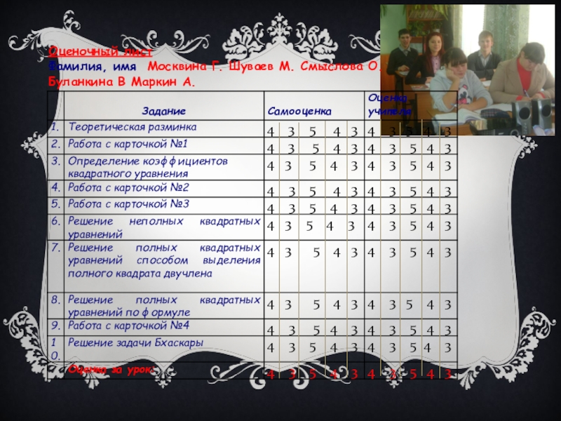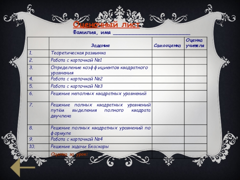 Слайд 26Оценочный лист