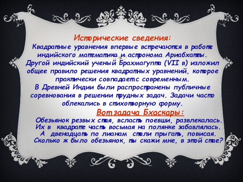 Квадратные уравнения впервые встречаются в работе индийского математика и астронома