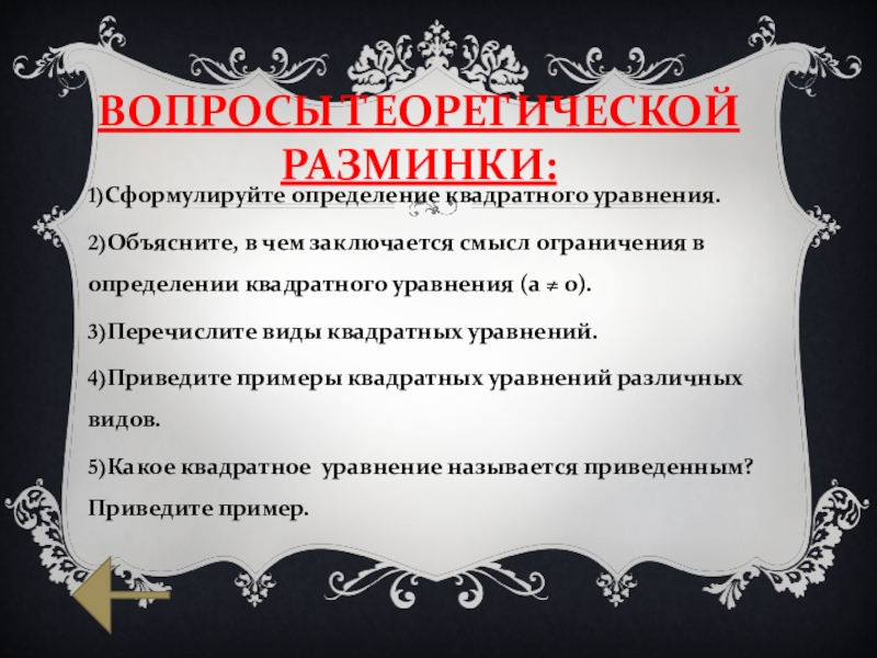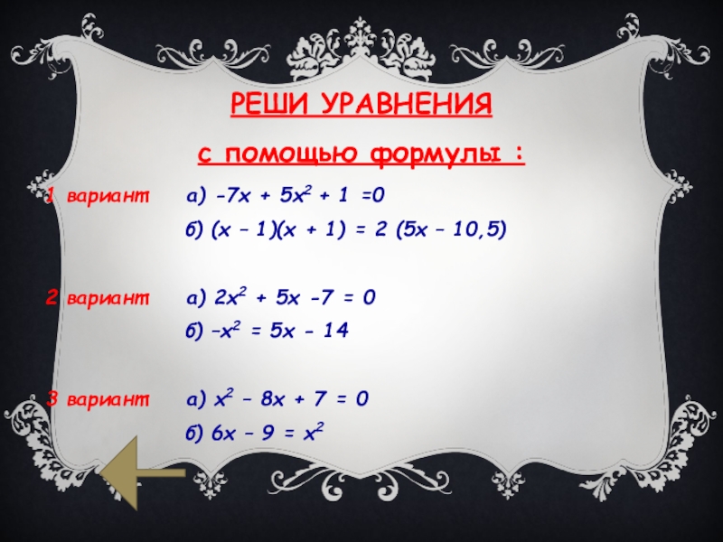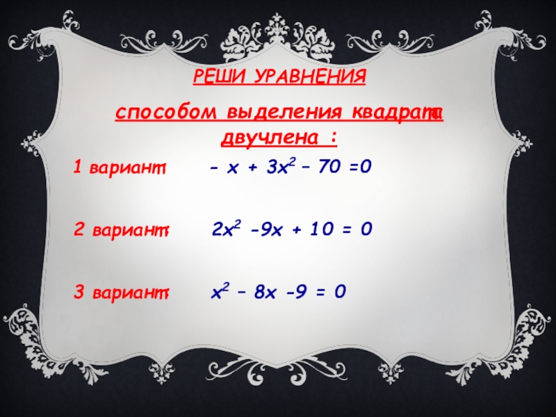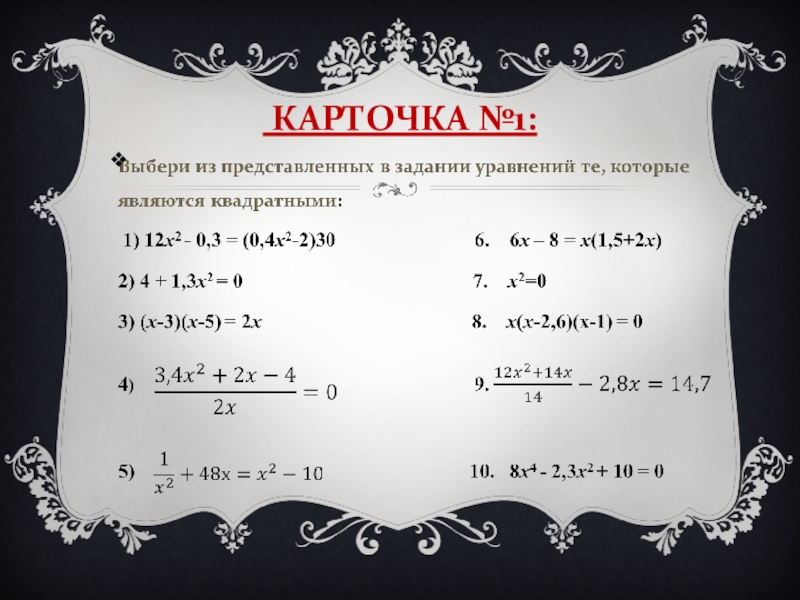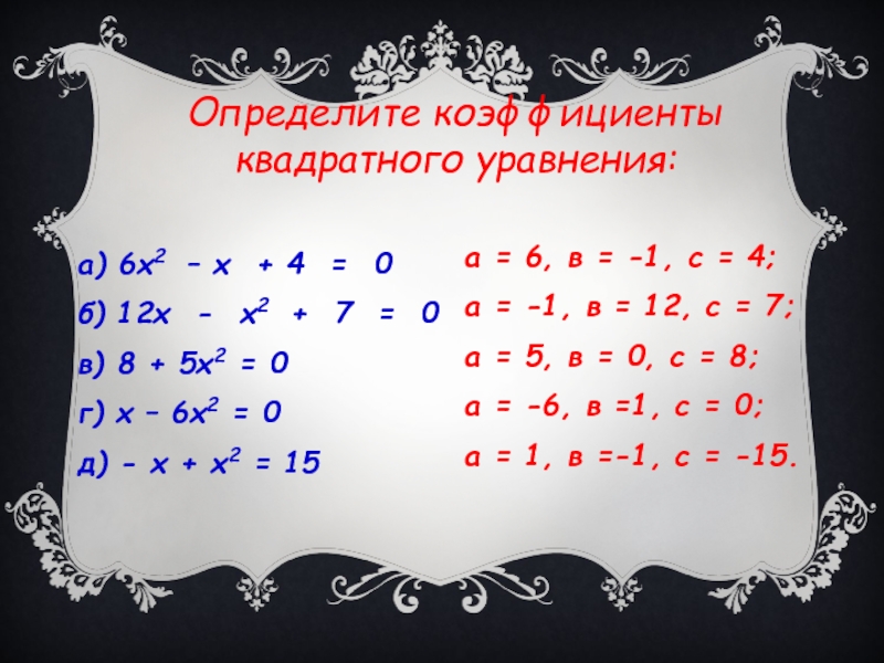 См. Презентация «Квадратные уравнения» слайд 3,Слайд 4