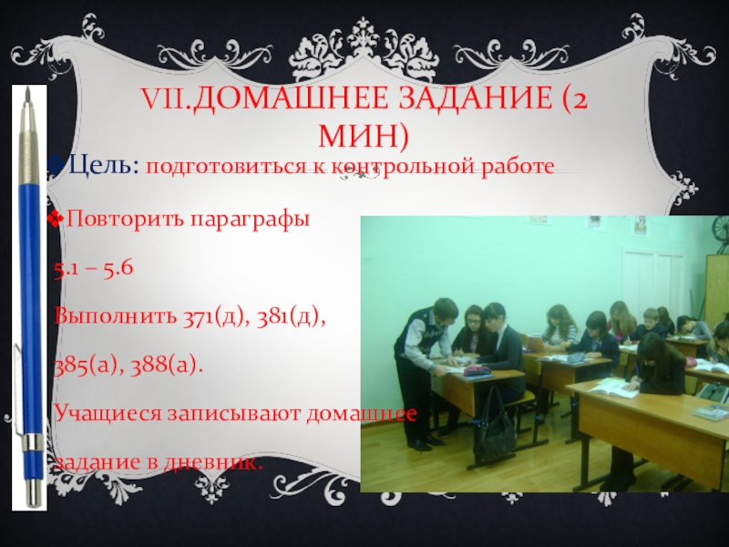 Слайд 55VII.ДОМАШНЕЕ ЗАДАНИЕ (2 МИН)
