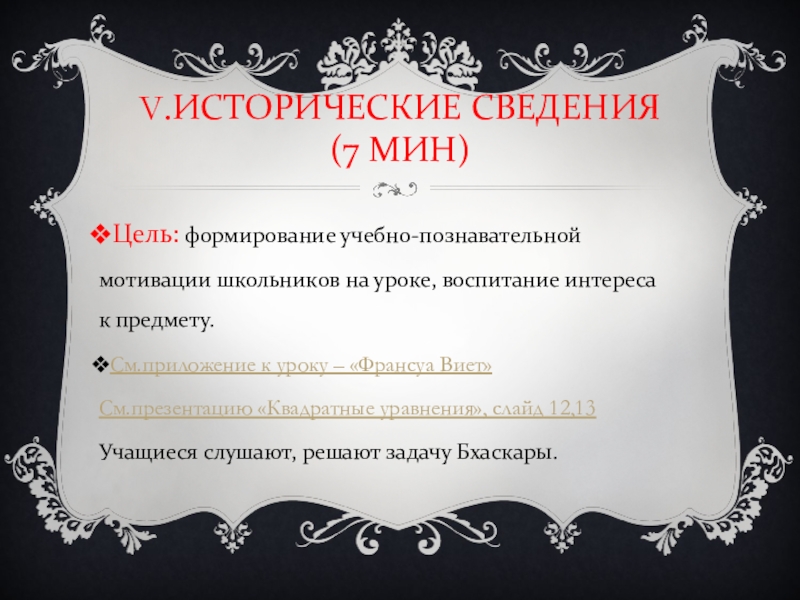 Слайд 44V.ИСТОРИЧЕСКИЕ СВЕДЕНИЯ(7 МИН)