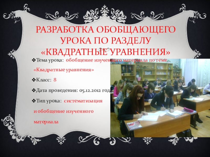 Презентация по теме «Квадратные уравнения».