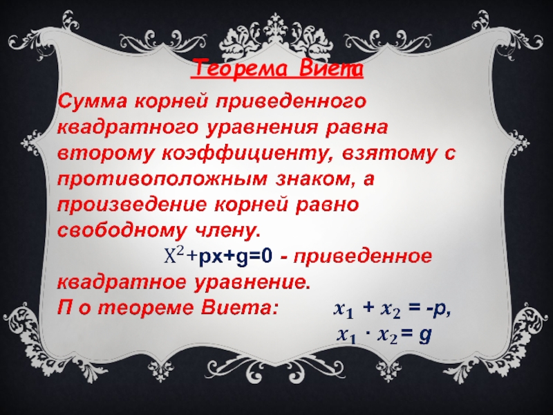 Слайд 15ПРИВЕДЁННОЕ КВАДРАТНОЕ УРАВНЕНИЕ. ТЕОРЕМА ВИЕТА.