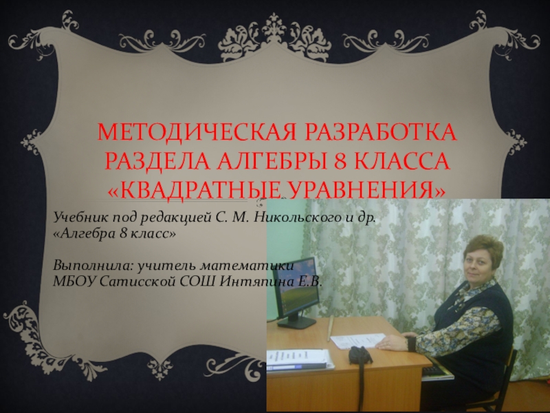 РАЗДЕЛА АЛГЕБРЫ 8 КЛАССА «КВАДРАТНЫЕ УРАВНЕНИЯ»