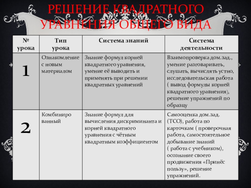 См.презентацию «Квадратные уравнения», слайд 12,13