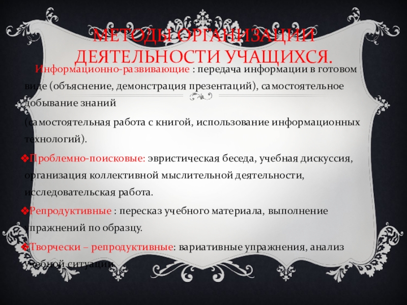 Слайд 10МЕТОДЫ ОРГАНИЗАЦИИ ДЕЯТЕЛЬНОСТИ УЧАЩИХСЯ.