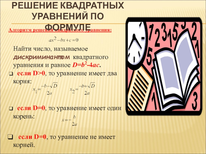 РЕШЕНИЕ КВАДРАТНЫХ УРАВНЕНИЙ ПО ФОРМУЛЕ