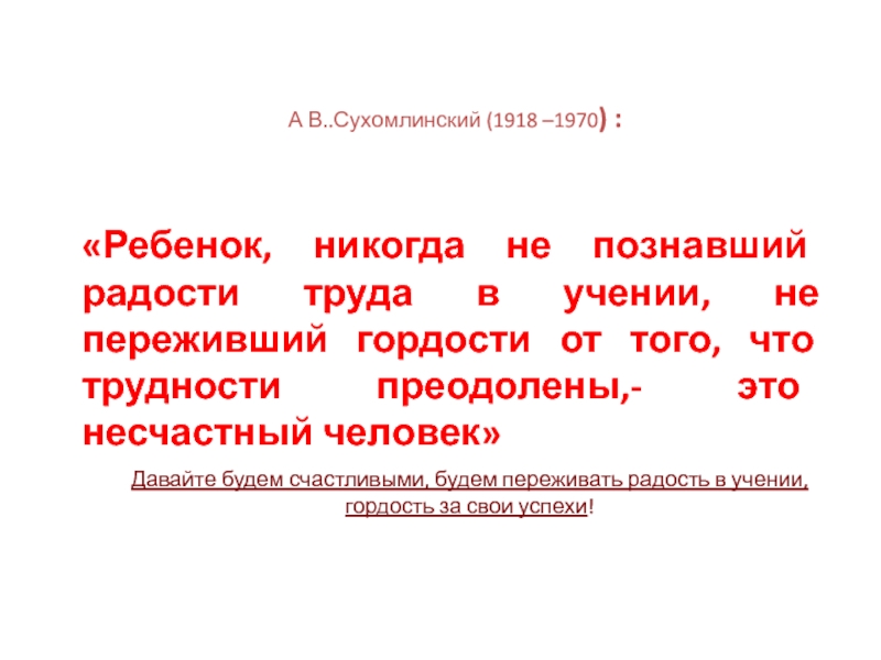 Давайте будем счастливыми, будем переживать радость в учении, гордость за свои успехи!