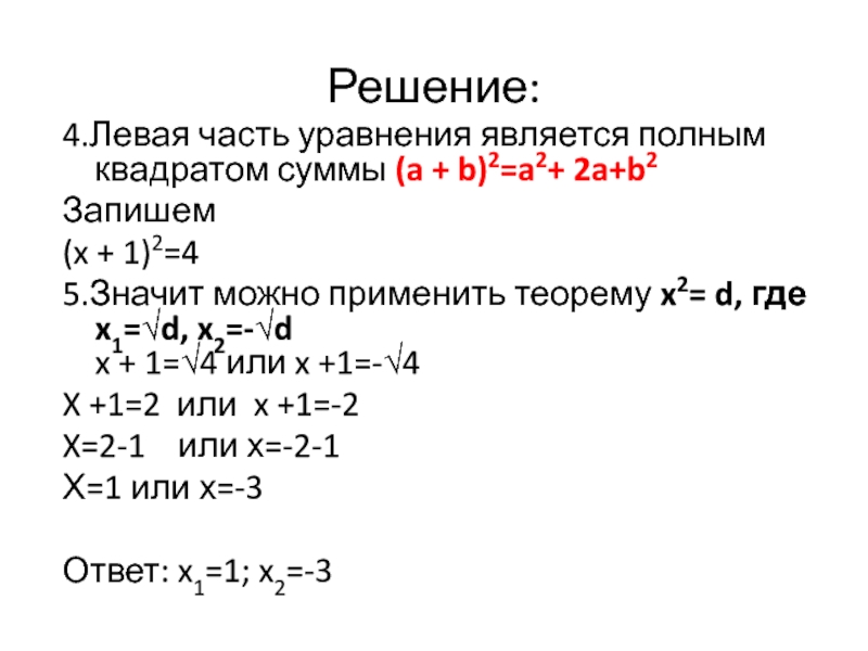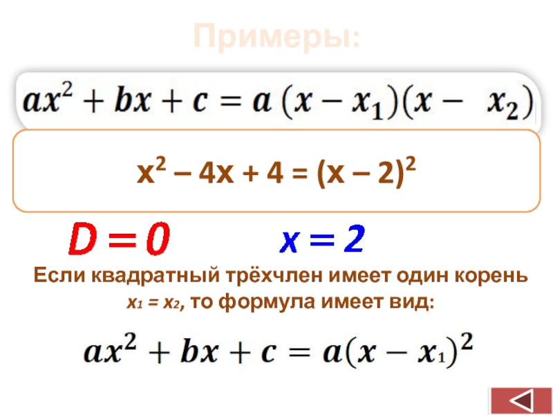 Если квадратный трёхчлен имеет один корень x1 = x2, то формула имеет вид: