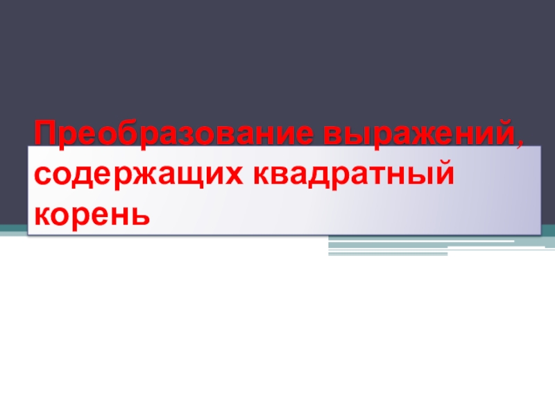 Слайд 1Преобразование выражений, содержащих квадратный корень