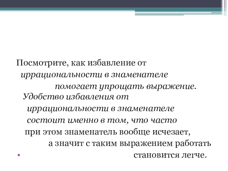 Презентация, доклад по алгебре на тему Квадратный корень. Иррациональность в знаменателе